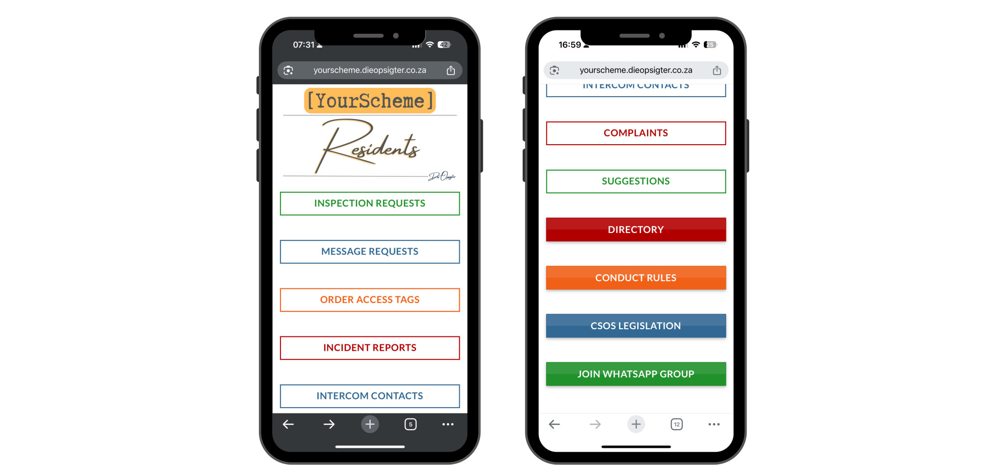 The Residents Portal is a user-friendly digital interface for all residents in your sectional title scheme. It simplifies communication, requests, and scheme engagement through mobile-first tools that anyone can use.